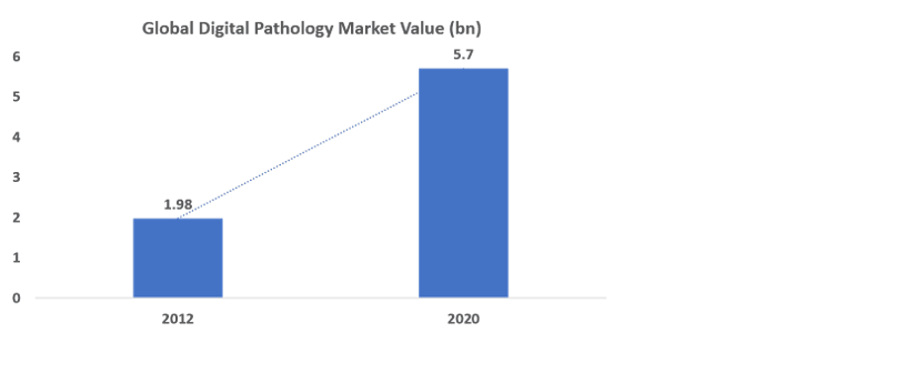 The global Digital Pathology market worth about $1.98bn in 2012 and is expected to hit $5.7 billion by 2020. Automation of the conventional pathology methods is the major driving force for this market, which leads to the improvements in workflow efficiency, efficiency in analysis. The other driving factor include fast and accuracy in results, availability of diagnostics facilities in the remote areas, cost reductions, reduction in procedural cost starting from delivery of slide to data. The major drawback is the strict regulatory approval process for the digital pathology systems. The other limiting factors are: digital pathology system integration cost, and standardization of technology and data interpretation format among countries. The Whole slide imaging (WSI) is the highest revenue generating segment in this arena with the highest growth potential.
